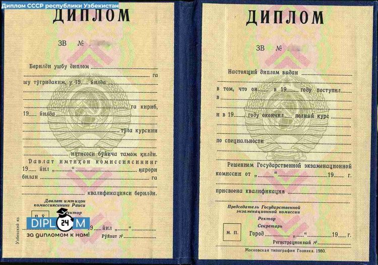 - Диплом СССР о высшем образовании Республики Узбекистан